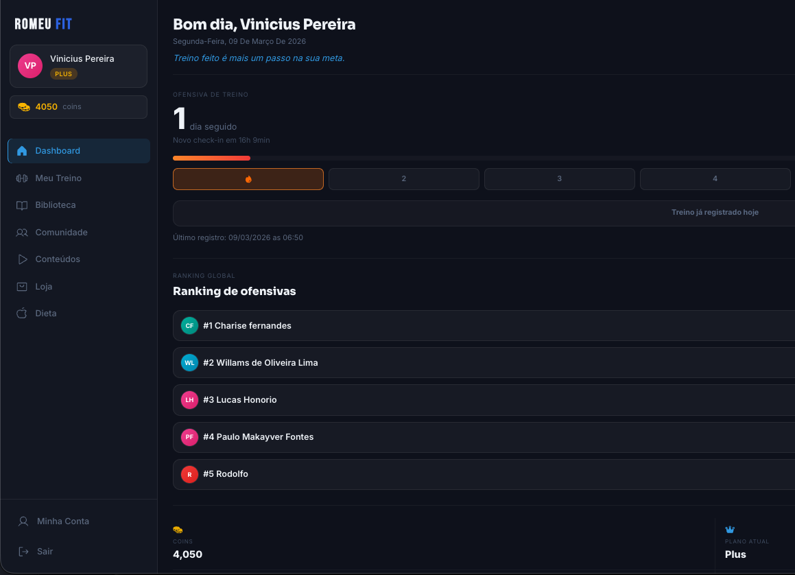 Cansou de ver isso acontecer e construiu a Romeu Fit do zero: tudo que ele aplica com alunos presenciais, agora acessível a partir de R$49,90 por mês.